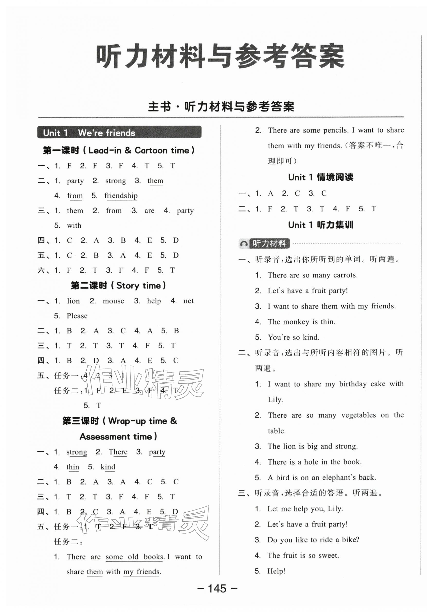 2026年全品学练考四年级英语下册译林版参考答案第1页