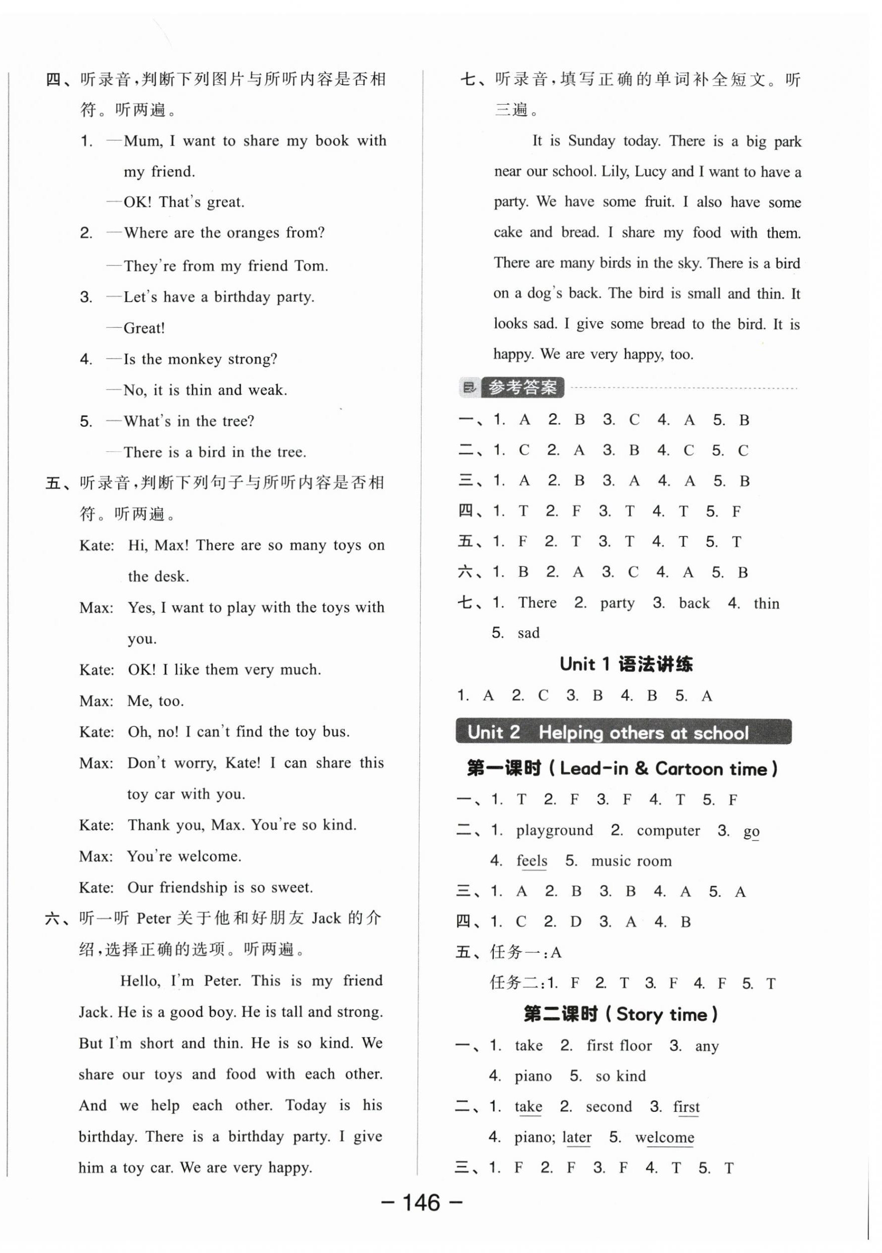 2026年全品学练考四年级英语下册译林版参考答案第2页