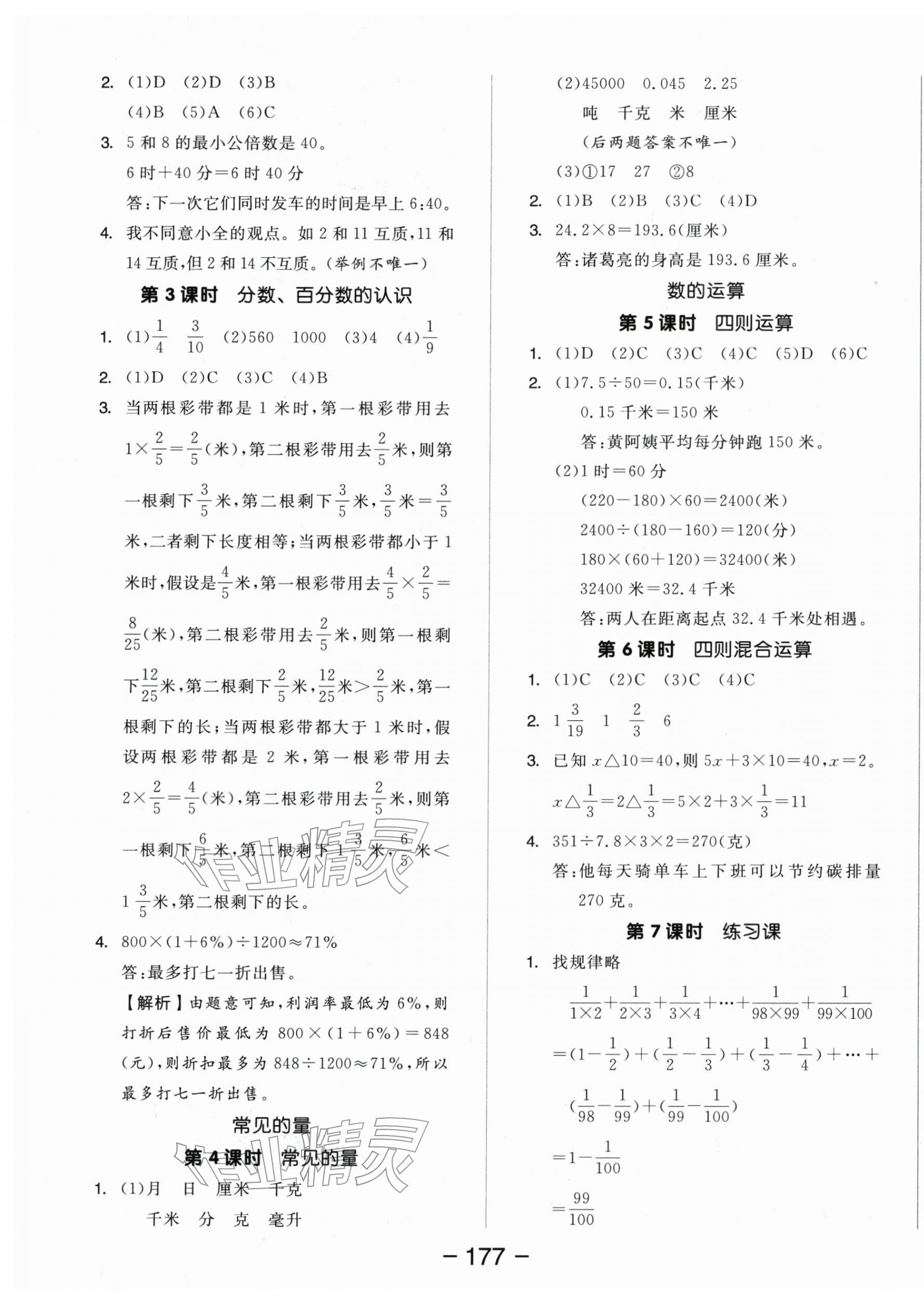 2026年全品学练考六年级数学下册苏教版参考答案第17页