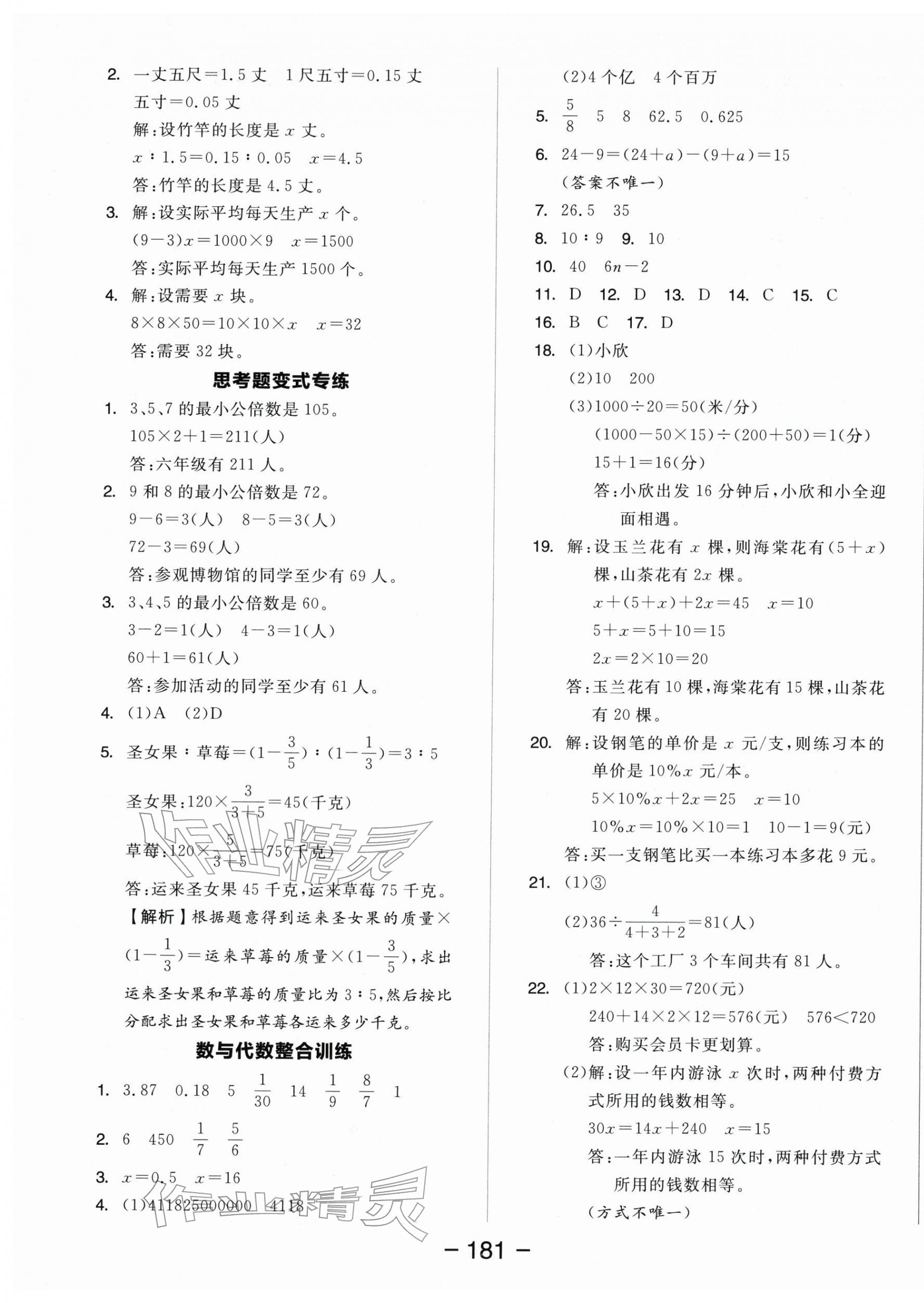 2026年全品学练考六年级数学下册苏教版参考答案第21页