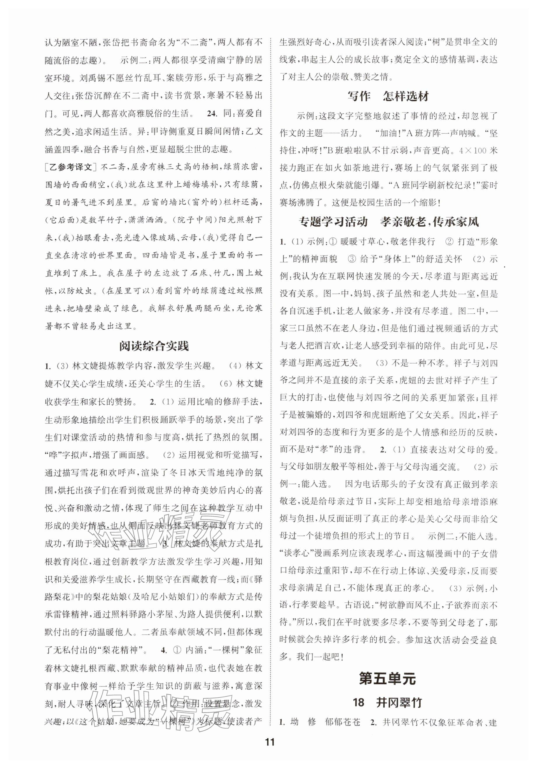 2026年通城学典课时作业本七年级语文下册人教版南通专版参考答案第11页