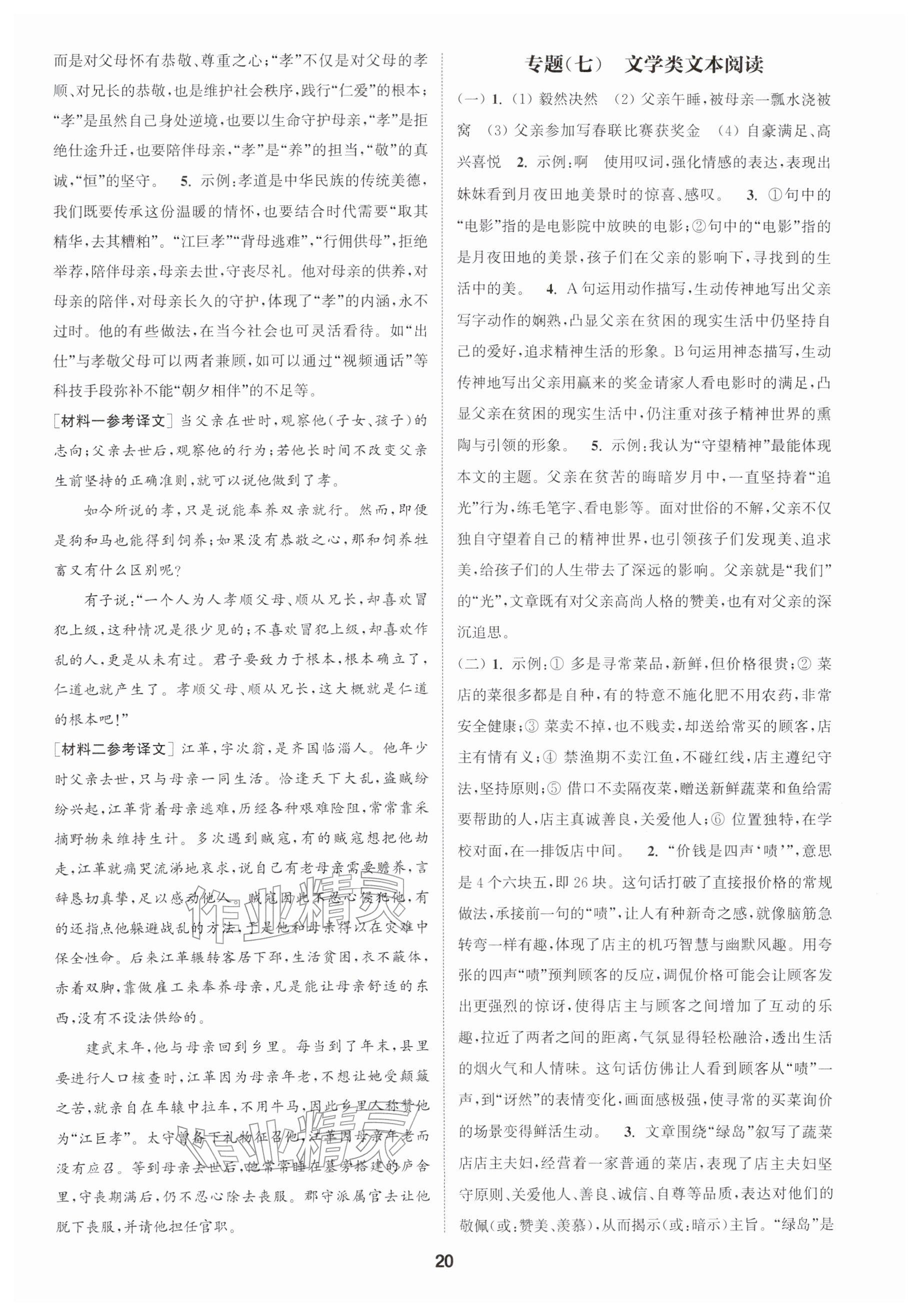 2026年通城学典课时作业本七年级语文下册人教版南通专版参考答案第20页