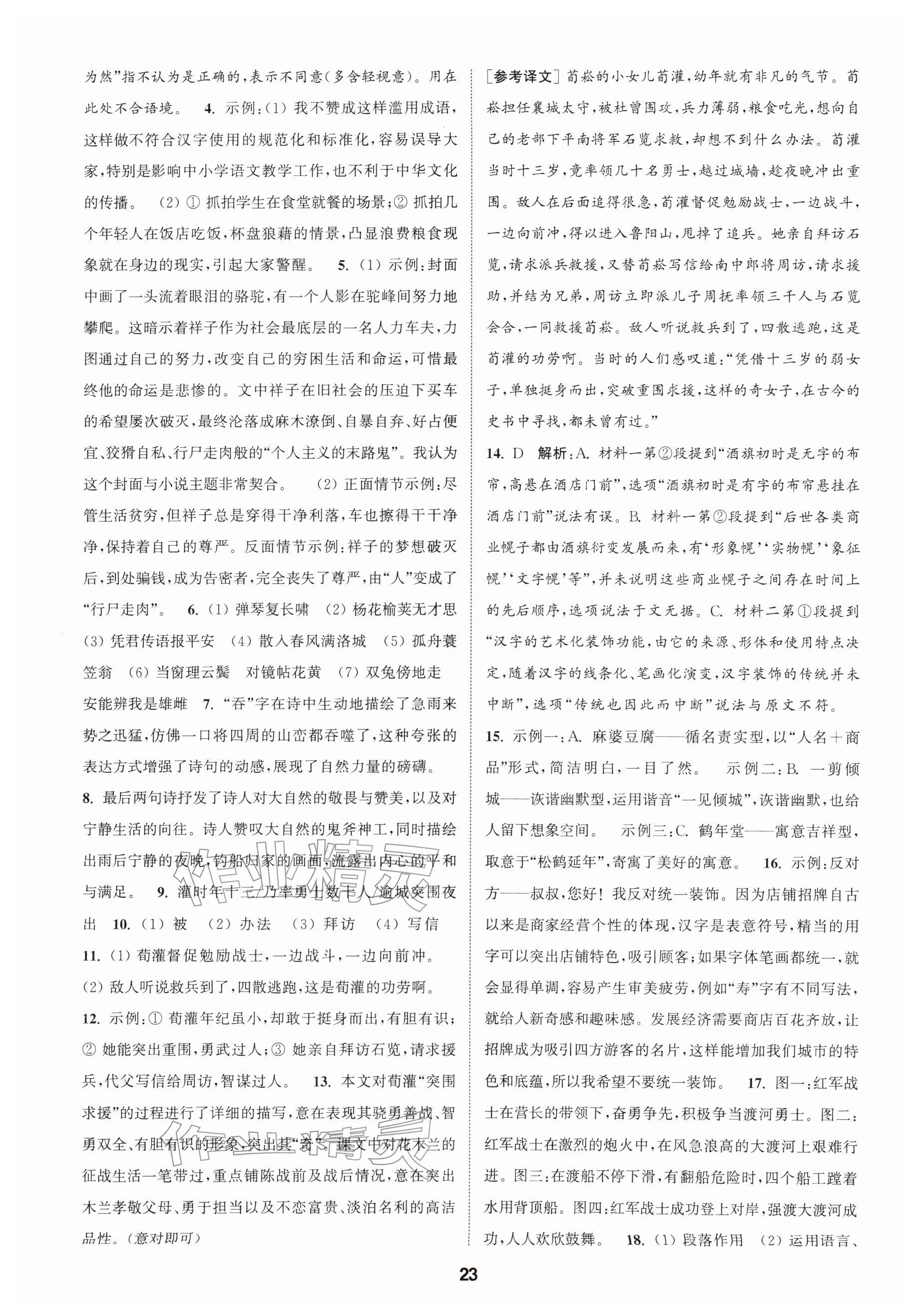 2026年通城学典课时作业本七年级语文下册人教版南通专版参考答案第23页