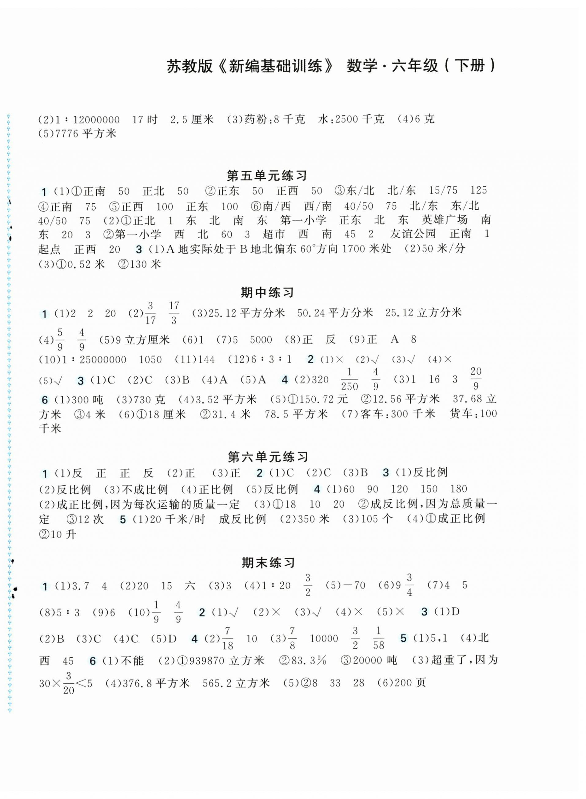 2026年新编基础训练六年级数学下册苏教版第8页