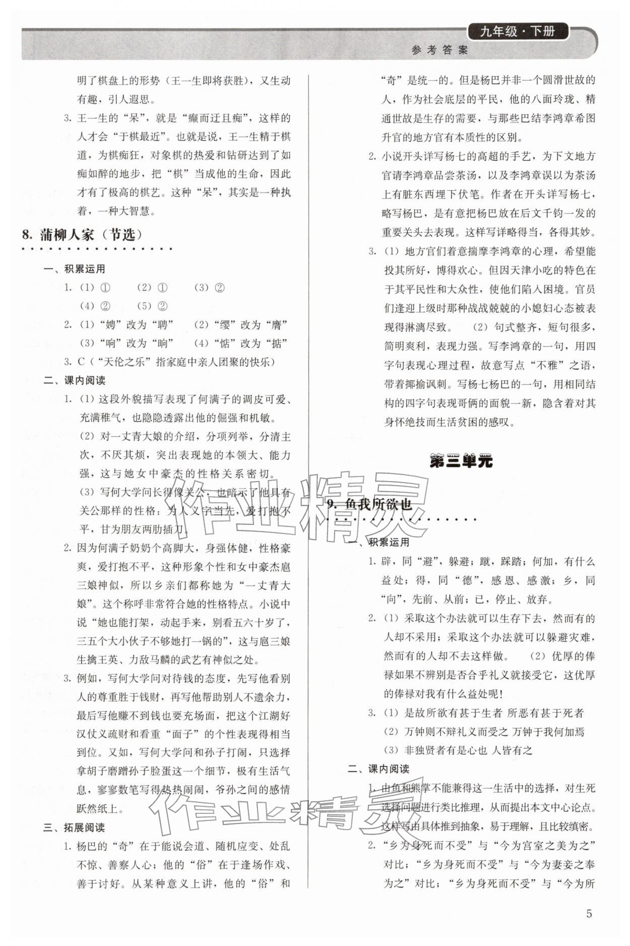 2026年补充习题九年级语文下册人教版人民教育出版社第5页