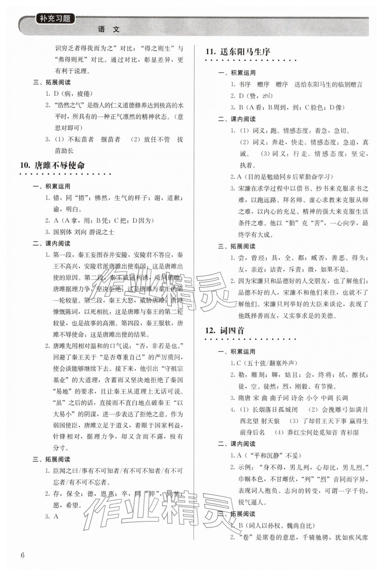 2026年补充习题九年级语文下册人教版人民教育出版社第6页
