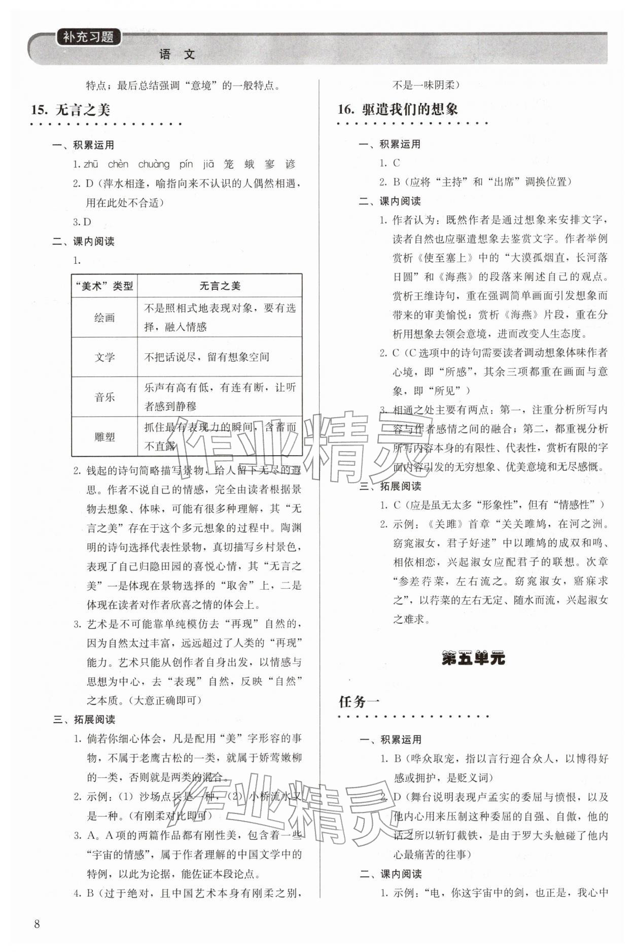 2026年补充习题九年级语文下册人教版人民教育出版社第8页
