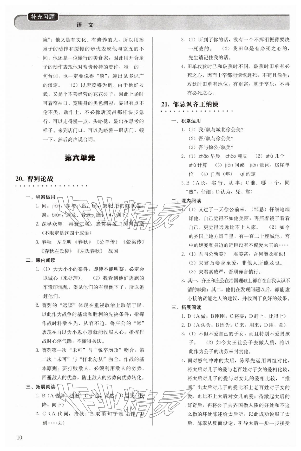 2026年补充习题九年级语文下册人教版人民教育出版社第10页