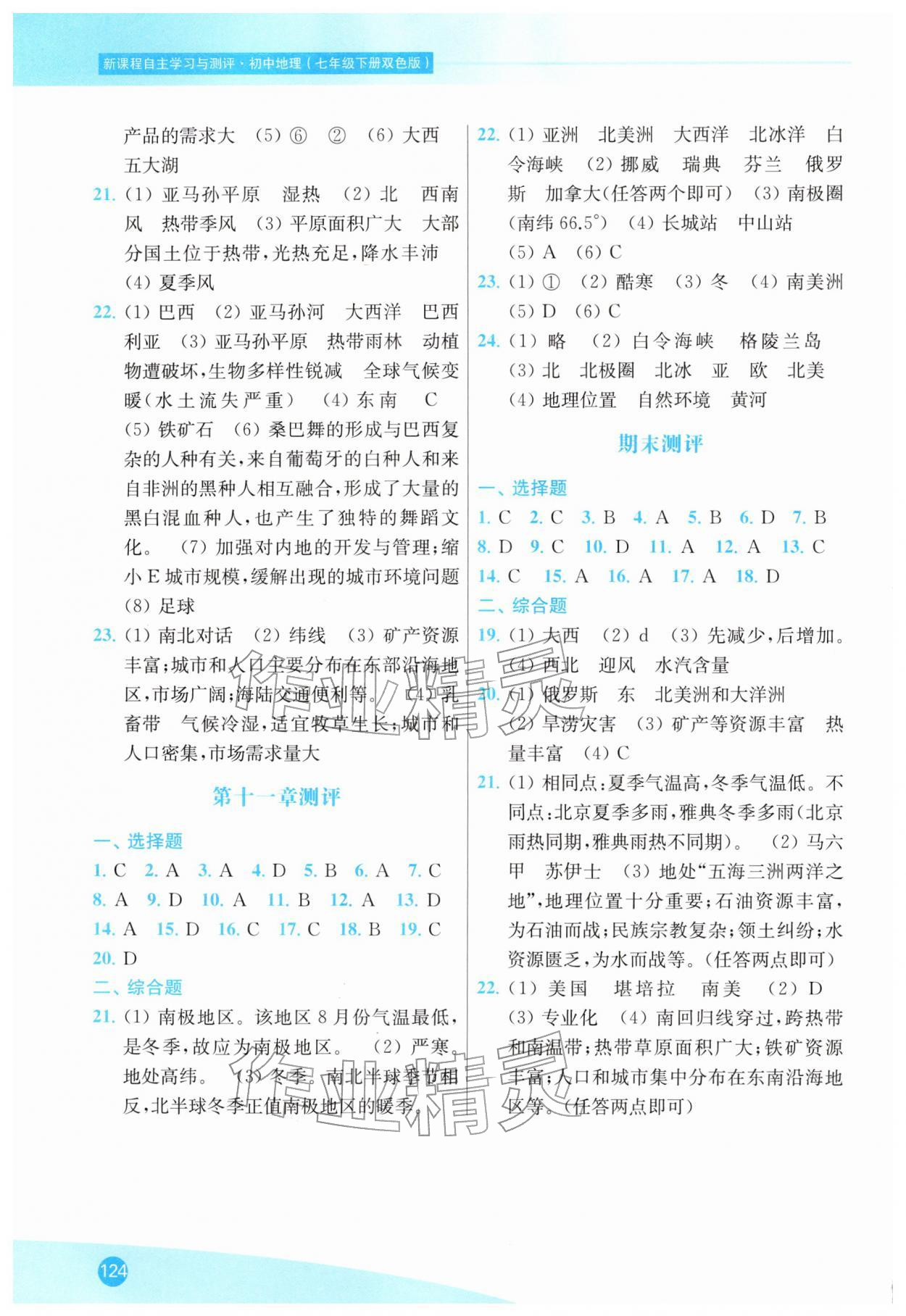 2026年新课程自主学习与测评七年级地理下册人教版第14页