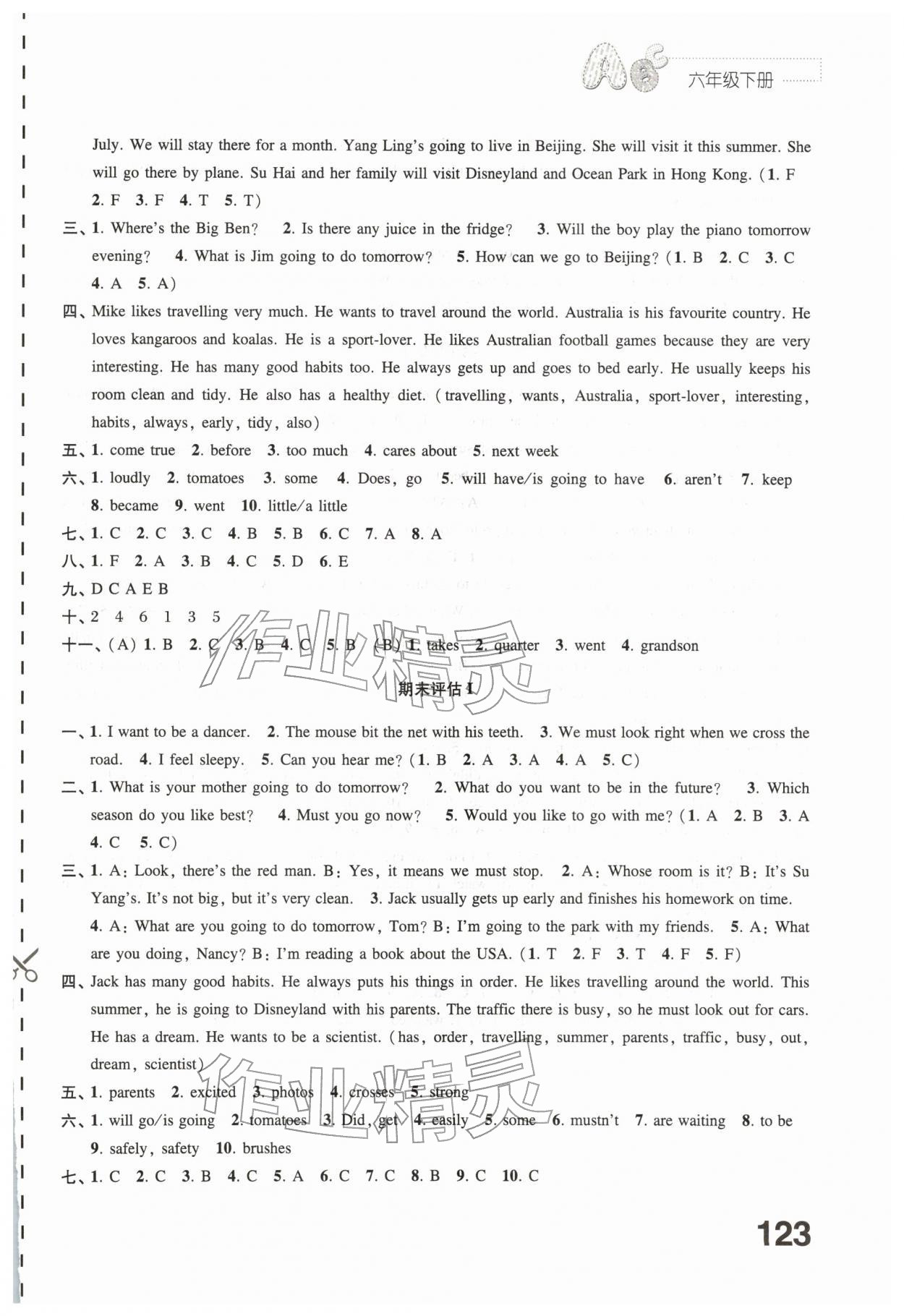 2026年练习与测试六年级英语下册译林版第15页