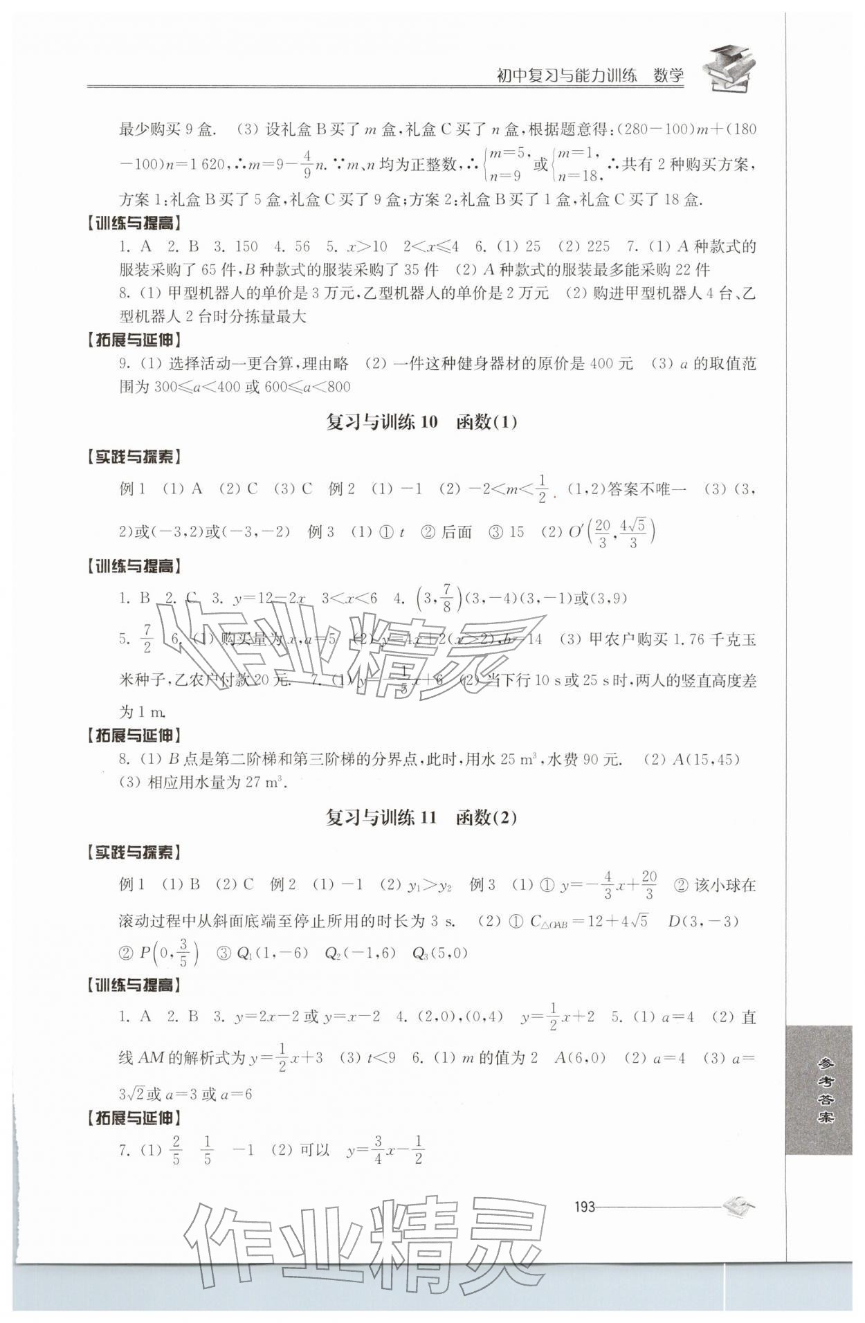 2026年初中复习与能力训练数学参考答案第8页