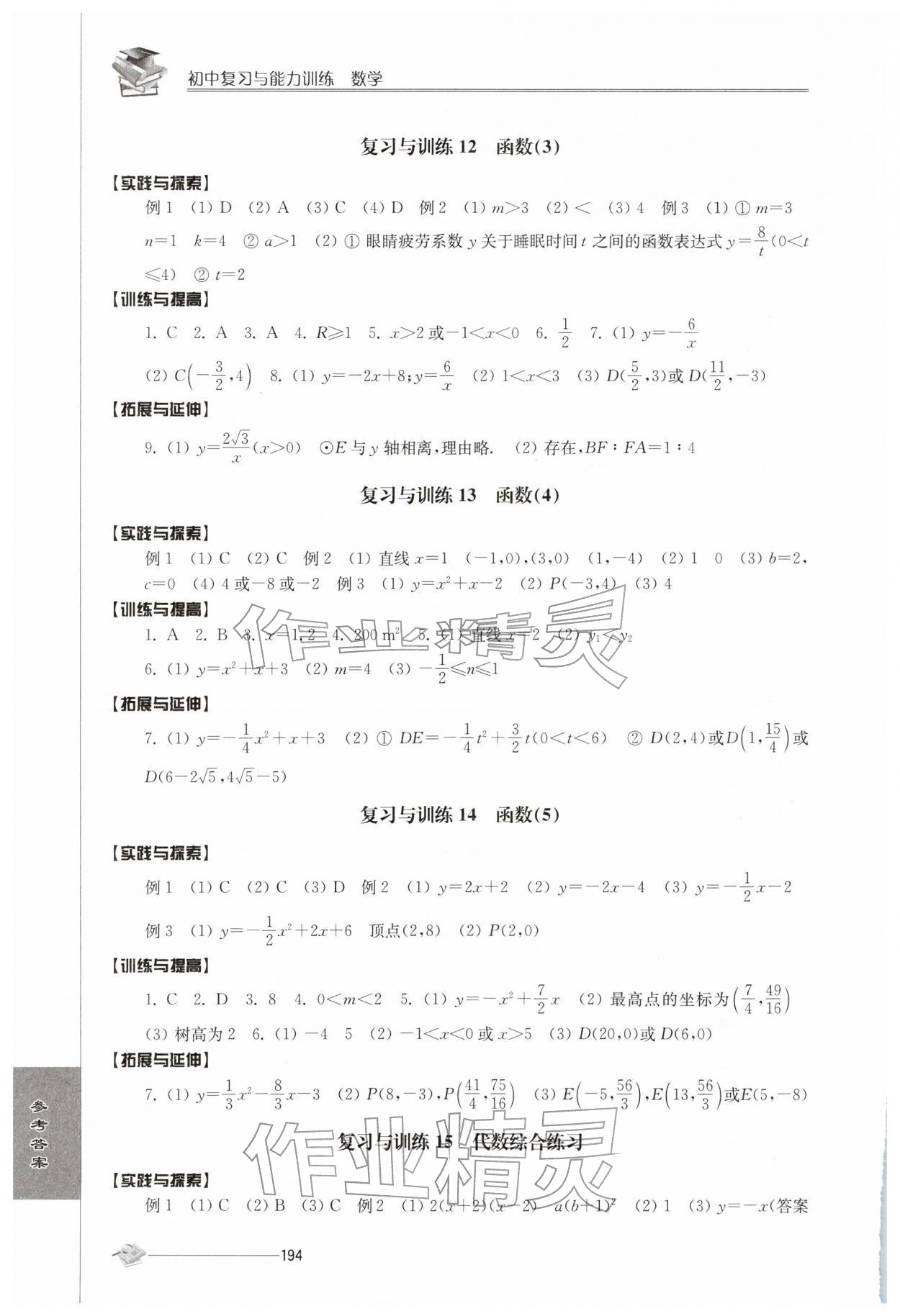 初中复习与能力训练答案