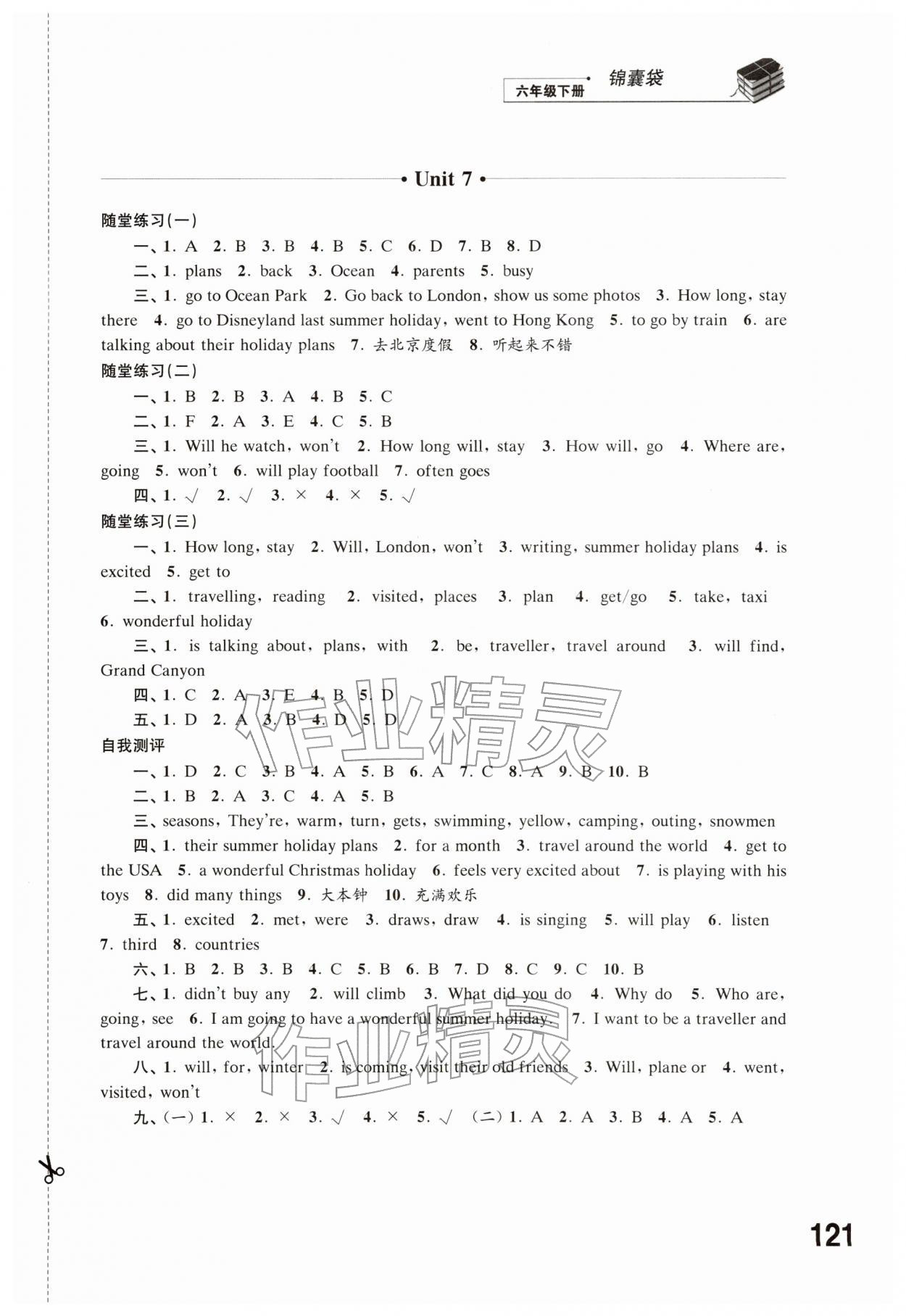 2026年同步练习江苏六年级英语下册译林版参考答案第7页