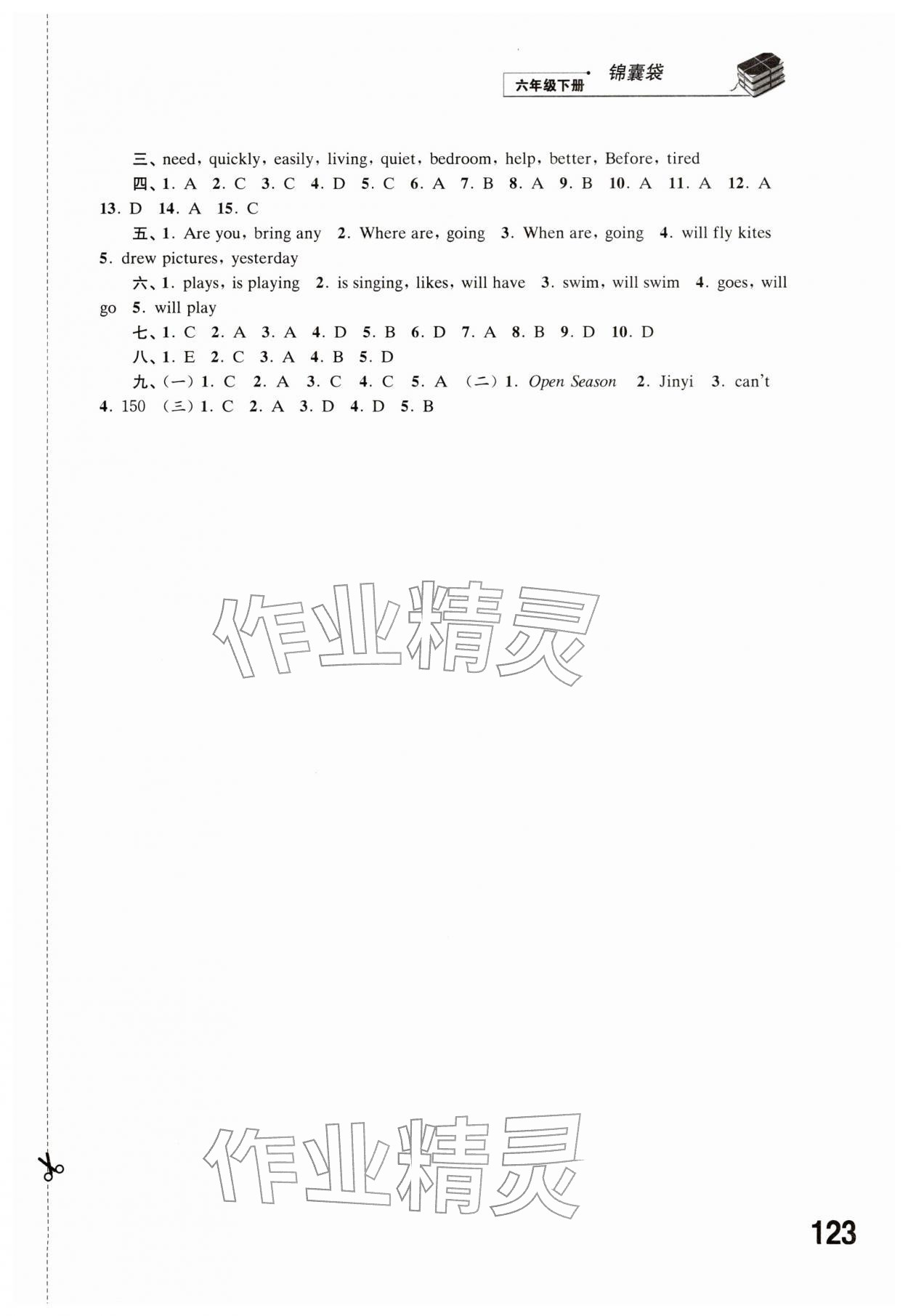 2026年同步练习江苏六年级英语下册译林版参考答案第9页