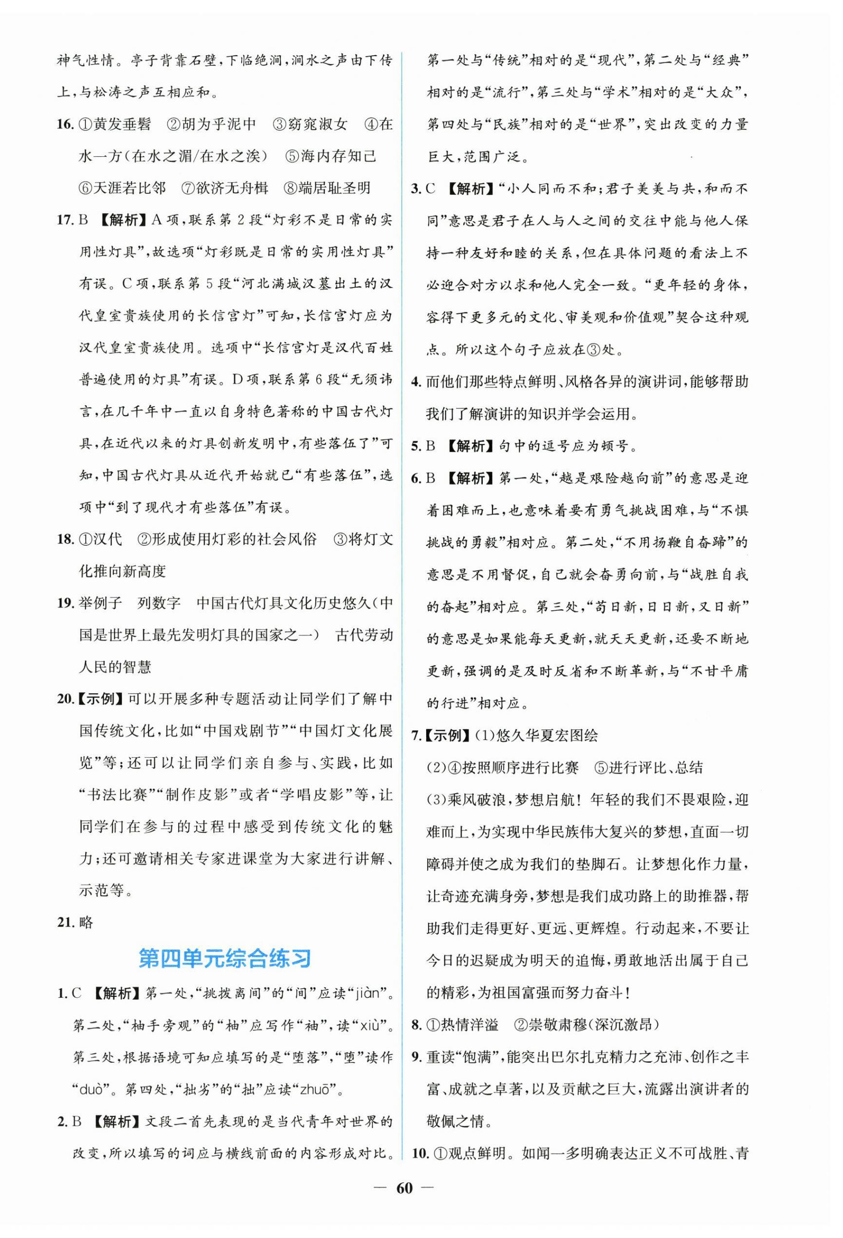 2026年阳光课堂金牌练习册八年级语文下册人教版第20页