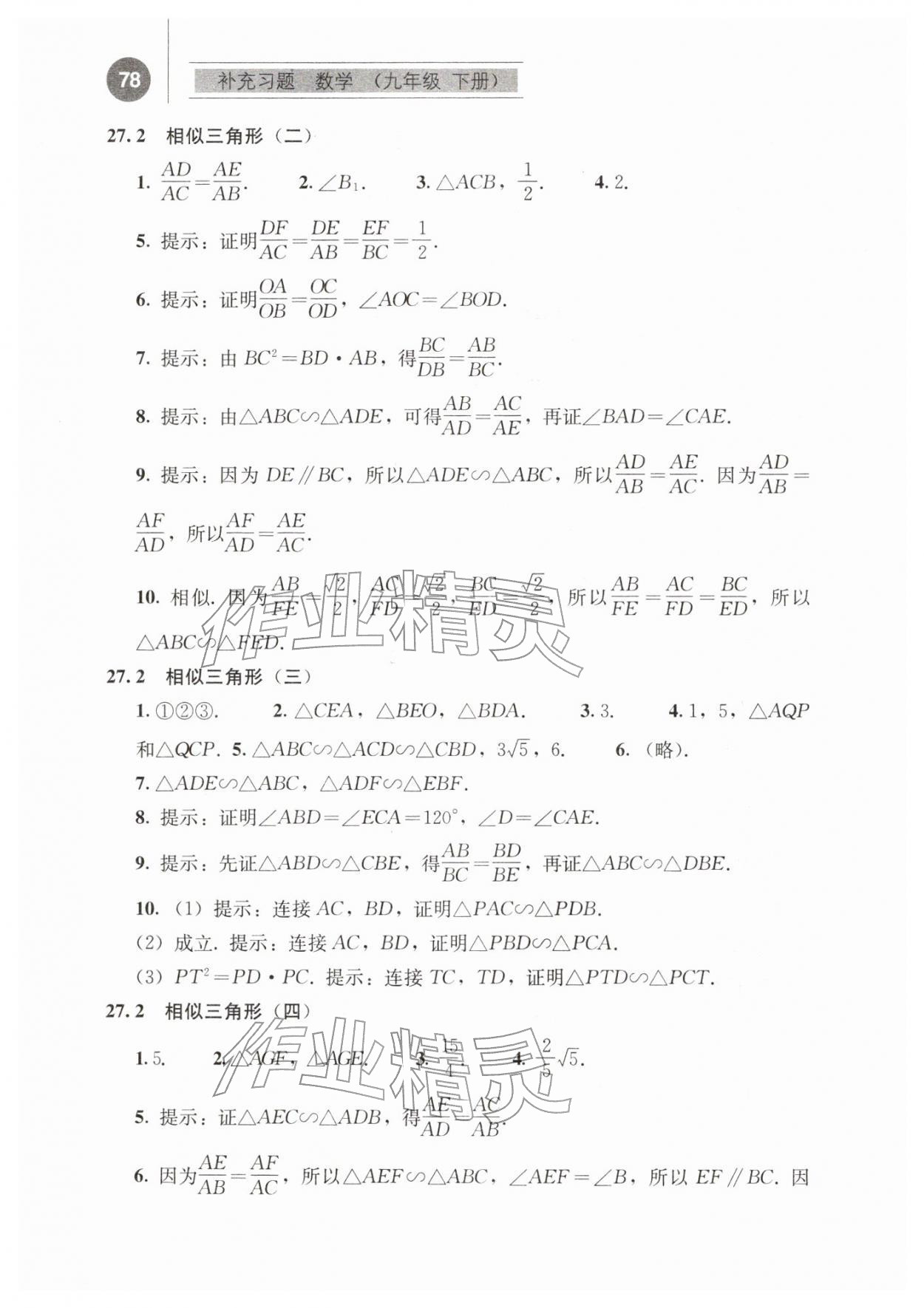 2026年补充习题江苏九年级数学下册人教版人民教育出版社参考答案第4页