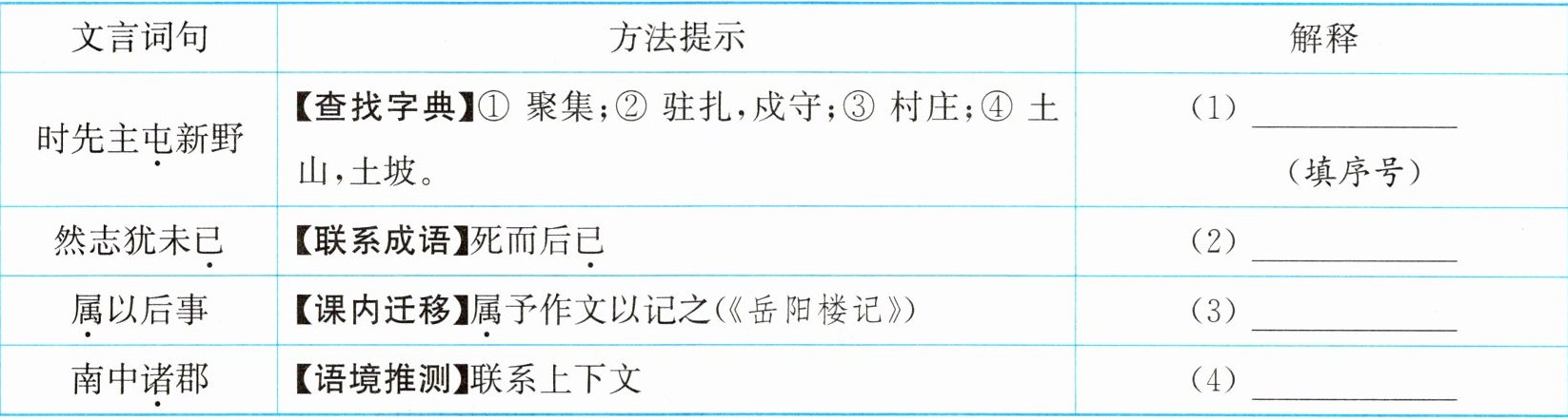 答案:5. (1)② (2)停止 (3)同“嘱”,嘱托 (4)众,各