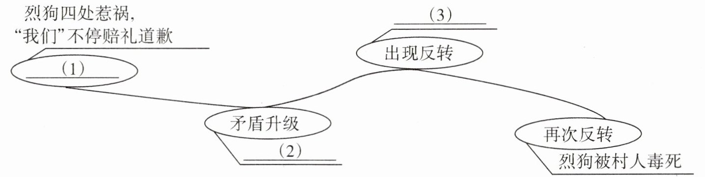4. 请以"烈狗"为线索,梳理故事情节,完成下图。