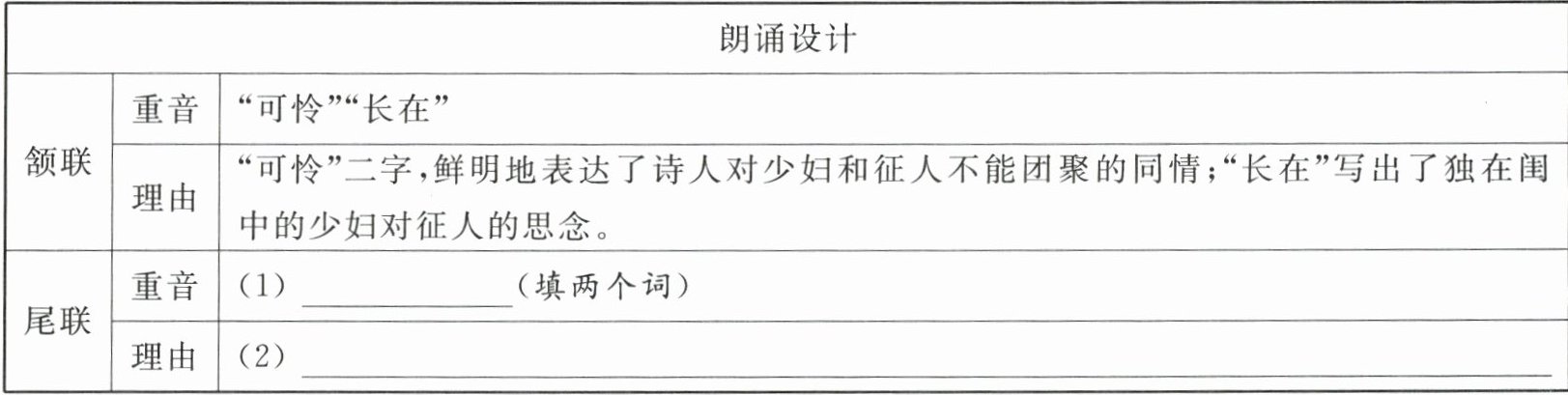 6. 重音能让朗诵更好地传情达意。请参照示例,完成尾联朗诵重音的设计。(3 分)