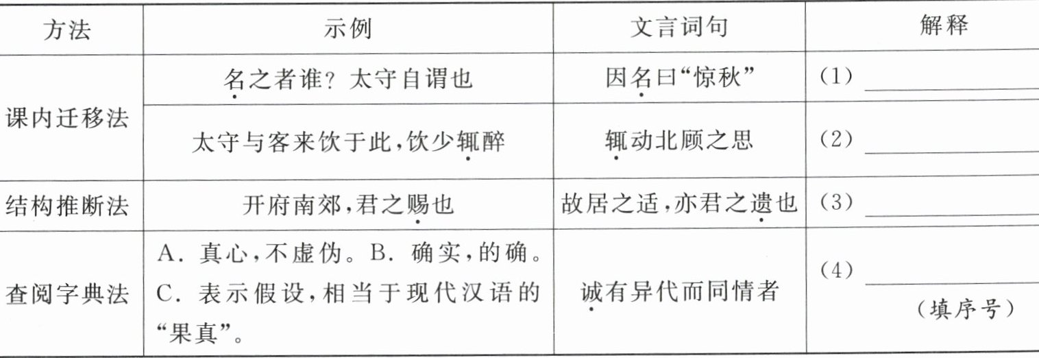 7. 新趋势 方法借鉴 请你运用积累的文言词语知识,完成下面的文言词语积累卡。(4 分)