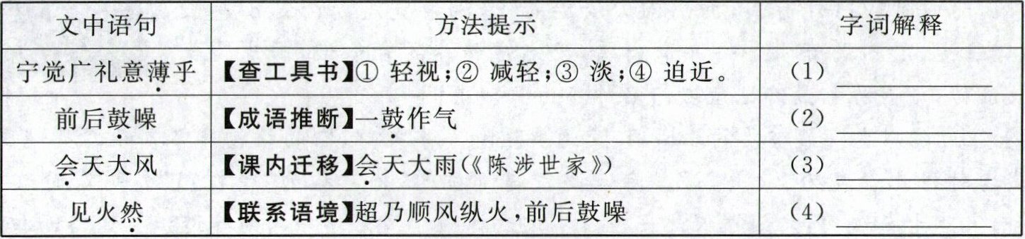 4. 新趋势 方法借鉴 请你参考表格提示的方法,解释下列句子中加点的词。(4分)
