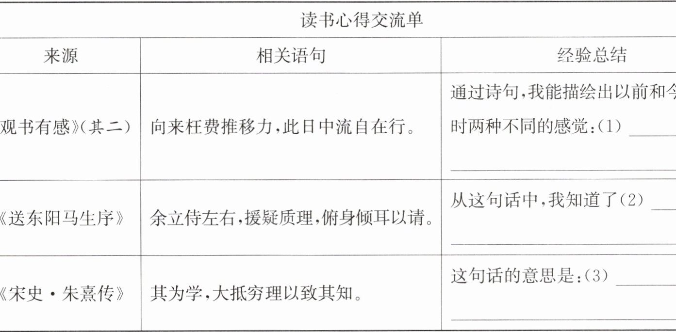 18. 亮点原创·班级召开读书心得交流会,请补充交流单。