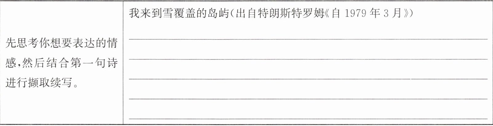 答案:4. 示例:一棵树,一棵树,彼此孤立地兀立着(出自乙诗) 在看不见的深处,它们把根须纠缠在一起(出自乙诗) 眉间尽是春色(出自丙诗)