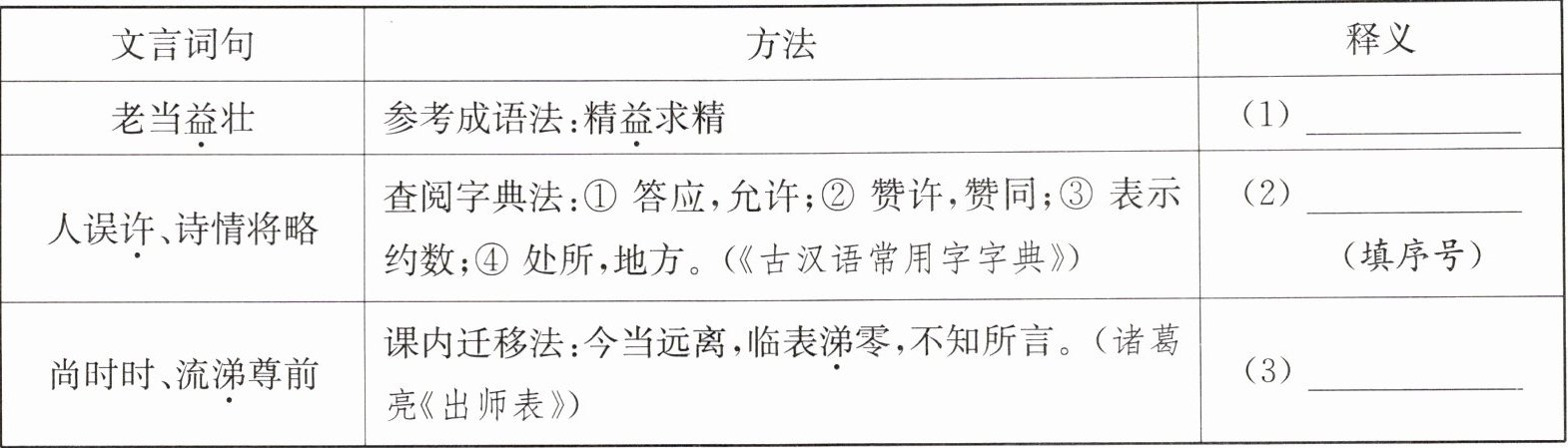 19. 新趋势 方法借鉴 【梳理文言词语】参考表格提示的方法,解释下列句子中加点的词。