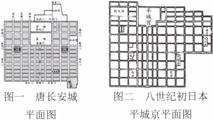 的建造仿照长安城;唐朝的天文历法、文字、典籍等传到日本,对日本社会的发展产生深远的影响鉴真东渡
