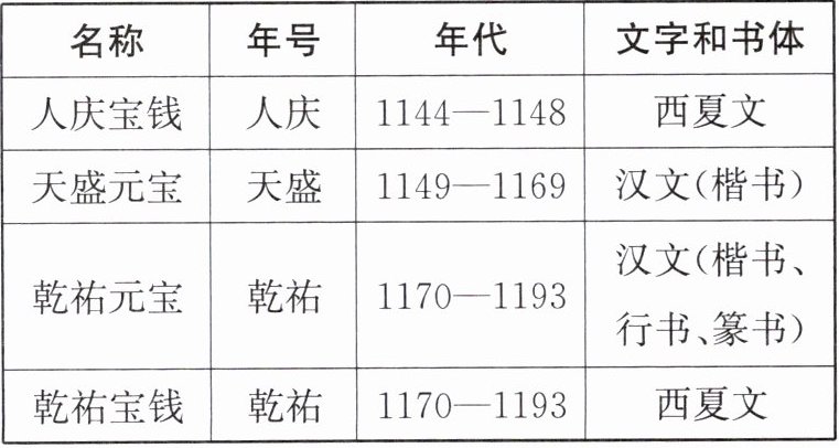 2. 下表是关于西夏铸币的部分信息。据此可知(
