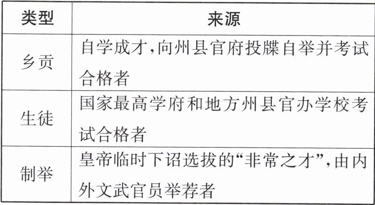 4. 下表所示为唐朝科举制考试中考生的三种来源。由此可知,唐代科举制(