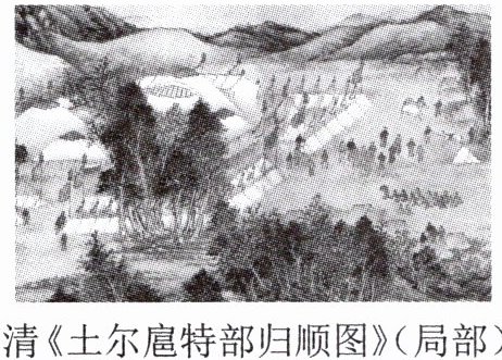 答案:5. B 解析:据材料中“《土尔扈特部归顺图》”并结合所学知识可知,该事件是土尔扈特部回归。1771年,西迁的蒙古族土尔扈特部无法忍受俄国的控制和压迫,在首领渥巴锡的领导下,战胜重重困难,返回新疆,在中华民族历史上谱写了光辉篇章,这表明中华民族有凝聚力和向心力。故选 B。