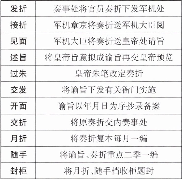 材料三 军机处一天办事程序一览表。