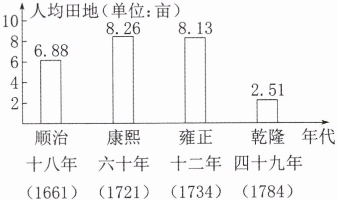 5. 如图是清朝前期人均田地与人口增长统计图。对此图解读正确的是(
