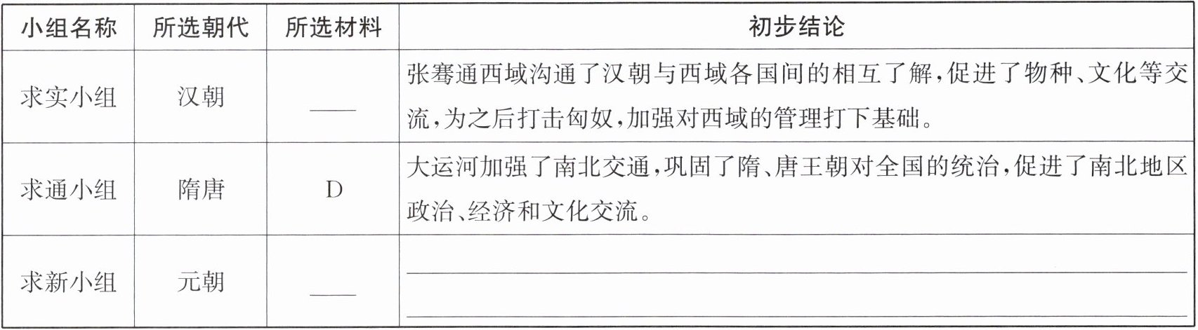 (3)听完各小组的汇报,结合所学,对该主题“从水陆交通看统一多民族国家的巩固与发展”,你能得出什么结论?