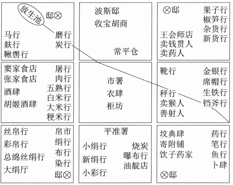 8. 如图为唐朝长安城西市平面示意图。据此可知,唐朝长安(