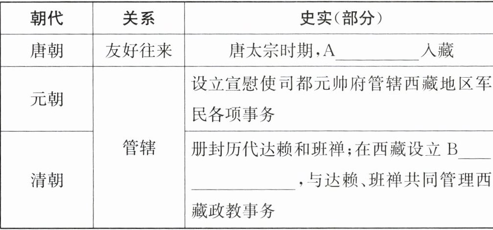 (1) 结合所学知识,在A、B处填上合适内容。根据材料一,分析元、清两朝时期与西藏地区的关系与唐朝时期有什么根本性的不同。(8分)