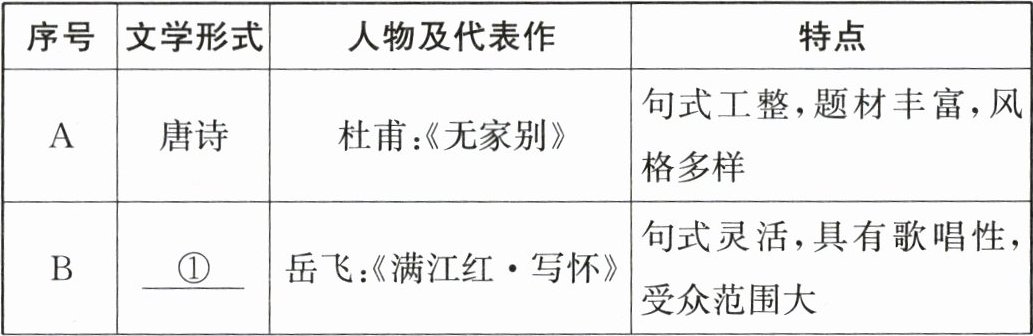 (1) 根据材料一并结合所学知识,完善表格①②③④处相关内容,概括中国古代文学的发展趋势。(8分)