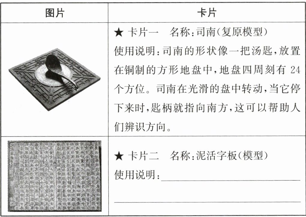 (2) 某同学制作了古代发明介绍卡,请模仿卡片一,结合所学知识,完善卡片二的内容。(4分)