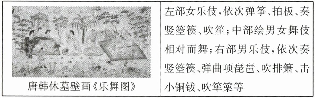 答案:16. (1) 特点: 唐朝气温高于比较基准线。(2 分) 趋势: 唐朝人口总量总体上呈上升趋势。(2 分) 联系: 温暖的气候促进了农业发展,从而推动了人口增长。(2 分) (2) 史料类型: 第一手史料。(2 分) 信息: 唐朝舞蹈的姿态(或乐器种类、植物品种、服饰样式)多样; 体现民族交融的特点; 社会比较开放,充满活力。(答出其中一点即可,2 分) (3) 特点: 带有统一帝国的宏伟,呈现一种兼容的气度。(2 分) 影响力: 影响到波斯湾、红海等地; 成为重要的商业港口; 是世界重要的交通枢纽。(答出其中一点即可,2 分) (4) 原因: 气候温暖(或自然条件优越); 民族交融; 国家统一; 中外交往。(答出其中两点即可,4 分,其他答案言之有理也可)