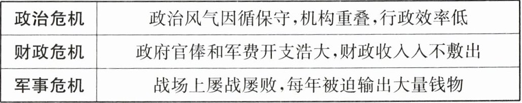 11. 为了应对下表中面临的危局,北宋政府的破局之策是(
