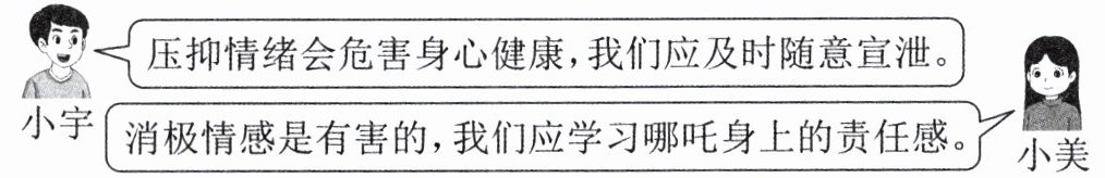 小宇:压抑情绪会危害身心健康,我们应及时随意宣泄。