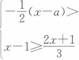 解不等式组$\begin{cases}-\dfrac{1}{2}(x - a) > 0 \\x - 1 ≥ \dfrac{2x + 1}{3}\end{cases}$,