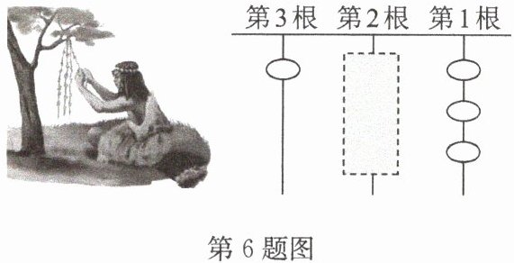 6. (2024·工业园区期末)我国古代《易经》记载,远古时期人们通过在绳子上打结来记录数量,即“结绳记数”. 如图,一位妇女在从右到左依次排列的绳子上打结,满五进一,用来记录采集到野果的个数. 若她采集到的一筐野果不少于46个,则在第2根绳子上的打结数至少是