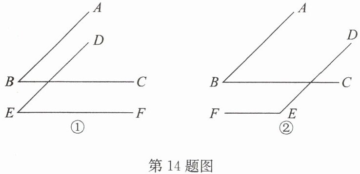 14. 如图,∠ABC的两边分别平行于∠DEF的两边,且∠ABC=45°.