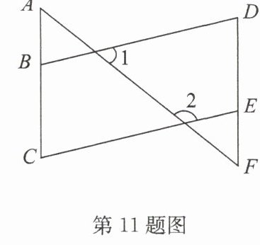 11. 如图,∠1=52°,∠2=128°,∠C=∠D. 求证:∠A=∠F.
