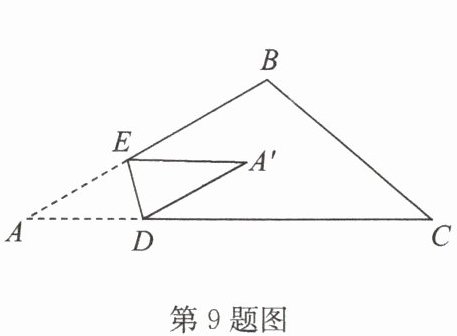 9. 如图,将一张三角形纸片 $ ABC $ 的一角折叠,使得点 $ A $ 落在点 $ A' $ 的位置,折痕为 $ DE $. 若 $ ∠ A = 30° $,$ ∠ C = 40° $,$ E $ 是 $ AB $ 边上的固定点($ AE < \frac{1}{2}AB $),$ D $ 是 $ AC $ 上一动点,将纸片沿 $ DE $ 折叠,使 $ A'D $ 与 $ △ ABC $ 的其中一边平行,则 $ ∠ AED = $