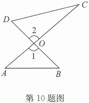 答案:10. 三角形内角和等于 180° 1 2 对顶角相等