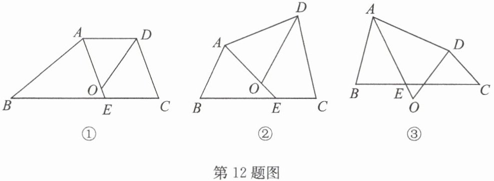 12.(20 分)(2025·宿城期中)在四边形 $ ABCD $ 中,$ ∠ BAD $ 的平分线交边 $ BC $ 于点 $ E $,$ ∠ ADC $ 的平分线交直线 $ AE $ 于点 $ O $.