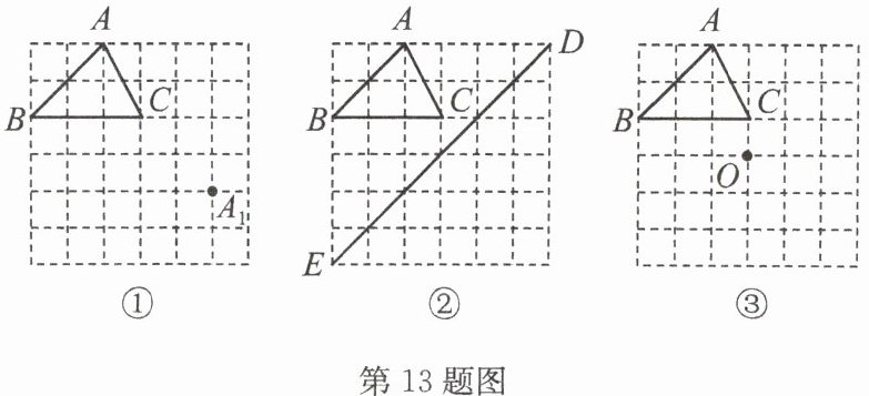 13. 解:(1)如答图①,$ △ A _ { 1 } B _ { 1 } C _ { 1 } $即为所求.